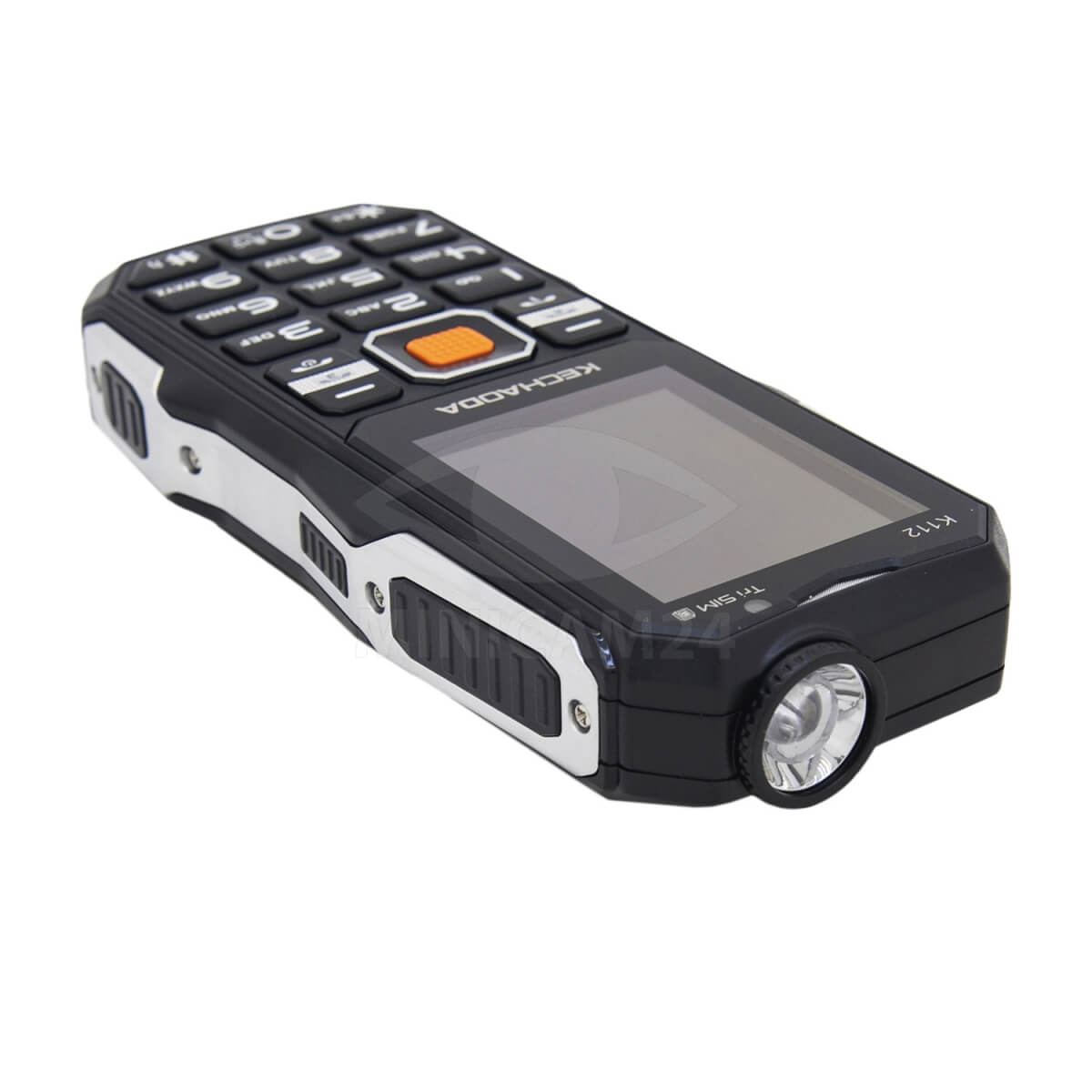 Мобильный телефон в противоударном корпусе с мягкими накладками. Рассчитан на установку трех SIM-карт, оснащен встроенным дисплеем диагональю 2,4 дюйма. Предусмотрены двойная камера, фонарик, радио, есть порт micro-USB. Съемный аккумулятор обеспечивает непрерывную работу гаджета в течение 300 минут в режиме разговора и 250 часов в режиме ожидания.